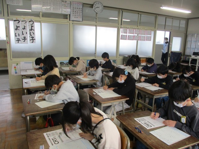 今までの学習を振り返り、力試し。国語と算数のテストをしました。4年生はみんな真剣に取り組むことができました。