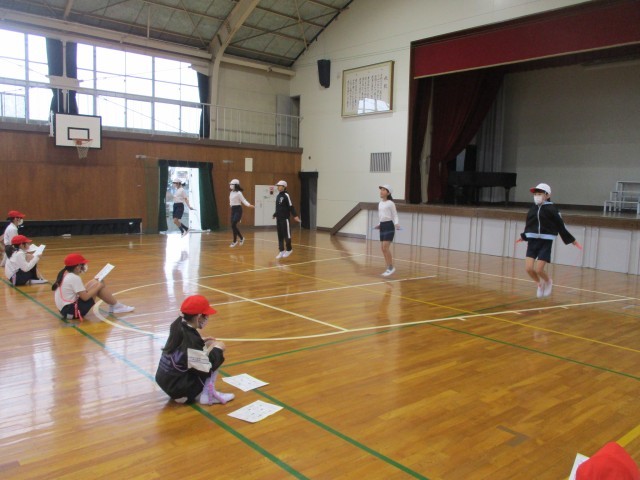 寒い中、体力づくりのためになわとびをしています。リズムに乗って軽快に跳んでいます。