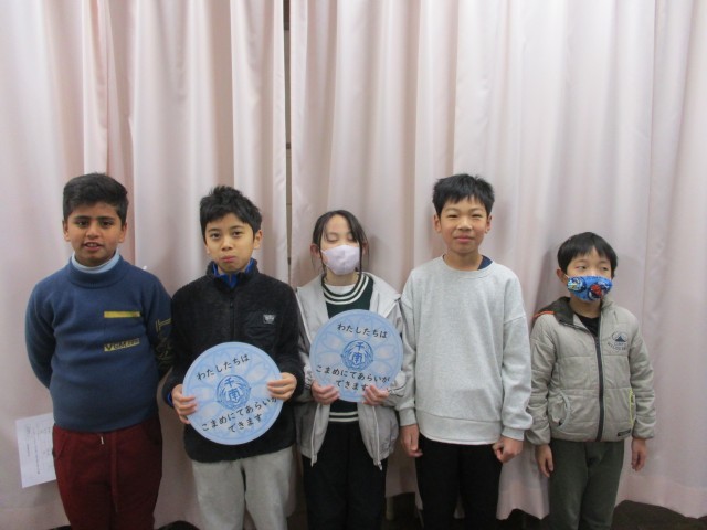 11月と1月に行った手洗い週間で、保健委員がこまめな手洗いができたクラスにバッジを贈りました。期間中は、半分以上のクラスがこまめな手洗いをすることができました。インフルエンザによる欠席は多くありませんが、今後もかぜや感染症予防のための手洗いの呼びかけをしていきます。
