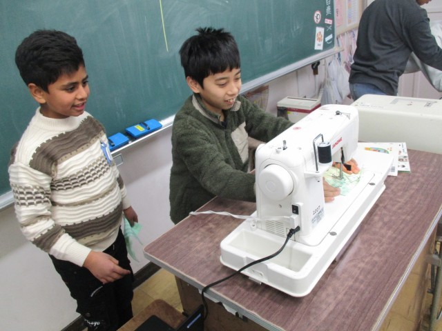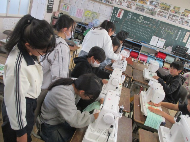 家庭科の学習で、ミシンを使って縫う練習をしました。初めてのミシンに初めは戸惑っていましたが、すぐに慣れて楽しそうに作業をする様子が見られました。ランチョンマットを作るのが楽しみですね。