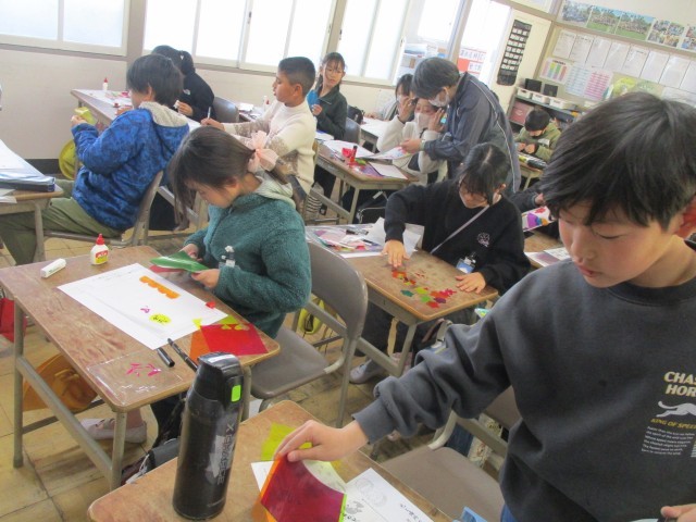 「紙から生まれるすてきな明かり」という単元で、図工の作品を作りました。カラーセロハンを様々な形に切って飾りつけをしていました。どんな風に仕上がるのか楽しみです。