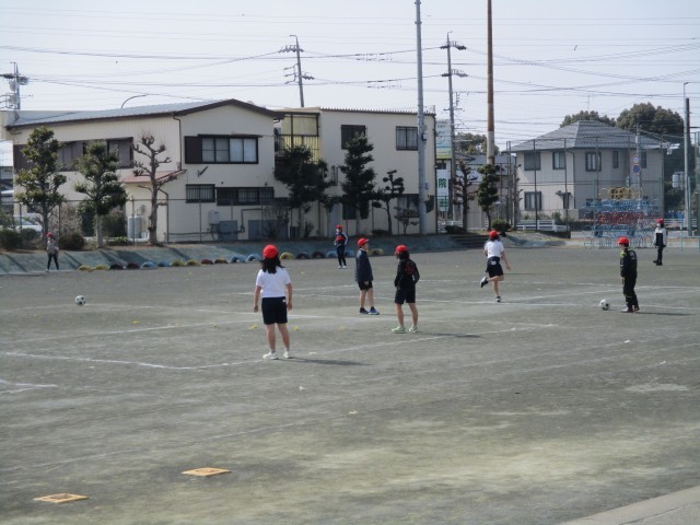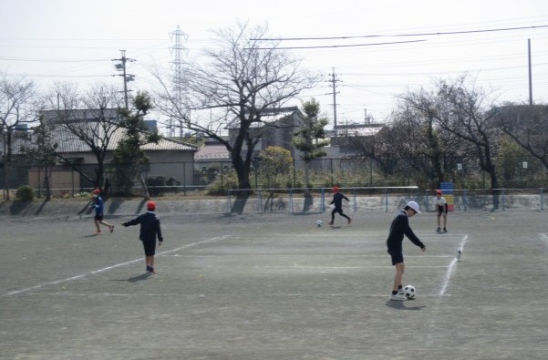 運動場では、上着を脱いで、サッカーをしている様子がみられました。