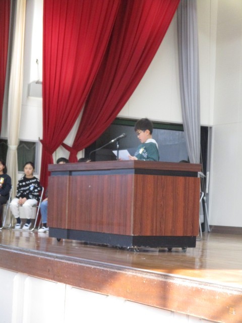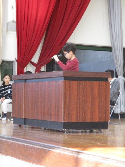 来年度のリーダーを決める大切な選挙が行われました。4年生も立候補しました。緊張しながらもみんな真剣に演説することができました。