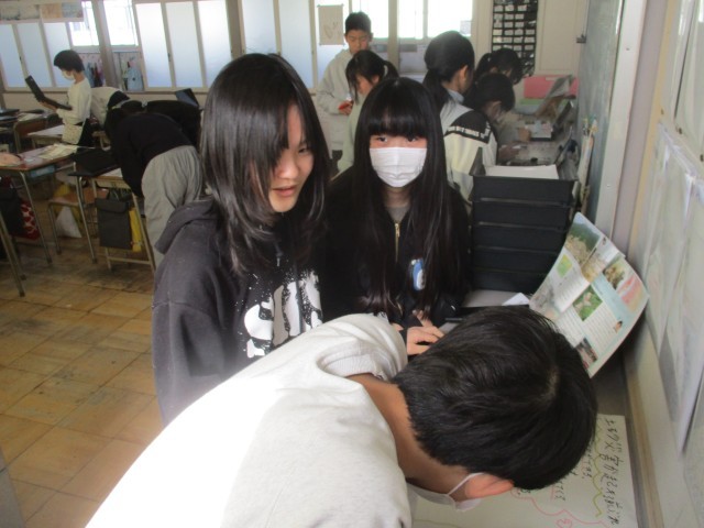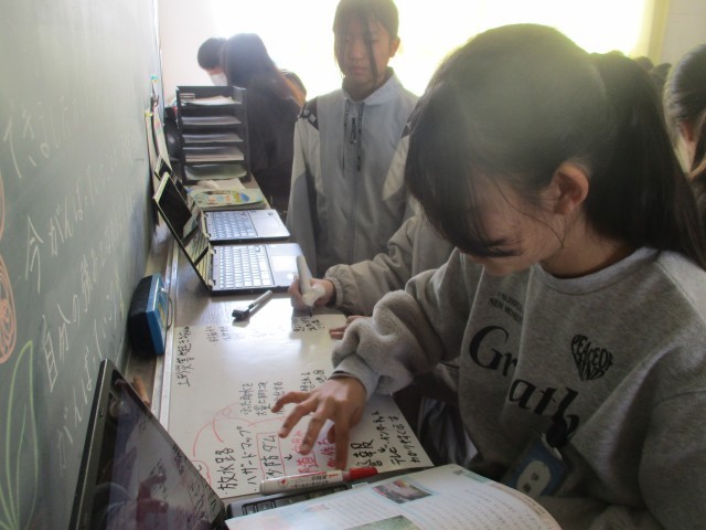 社会では「自然災害を防ぐ」を学んでいます。教科書からわかることを読み取りchromebookを使って情報を自分でまとめた後は、友達と交流してみんなで学び合っています。