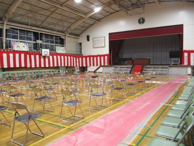 今日、児童の下校後に、教職員で卒業式の会場準備を行いました。