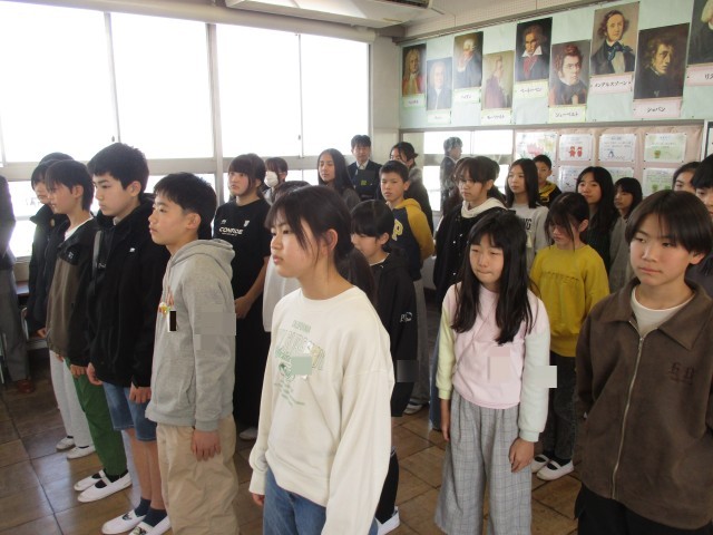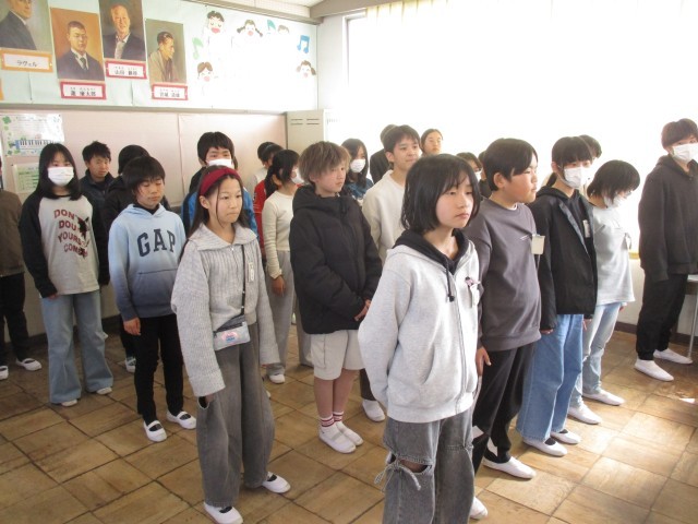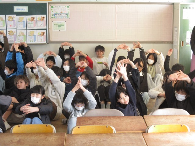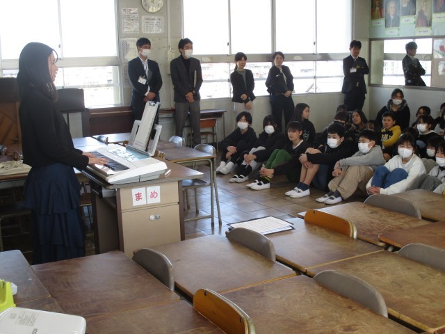 今日は、千秋中学校の先生が小学校に来て、出前授業を行ってくれました。中学校での音楽の授業を体験でき、とても楽しそうでした。