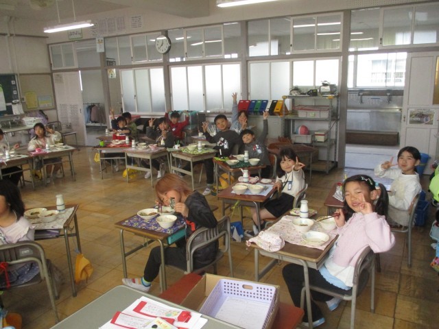 本日の1年生の様子です。輪になって給食を食べたり、お店屋さんごっこパート2をやったりして、楽しく過ごしました。1年間このクラスで過ごした思い出を振り返りながら、次の2年生への期待を膨らませていました。