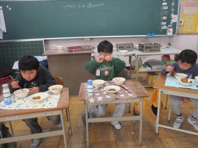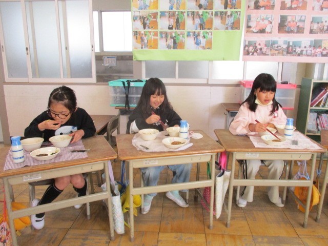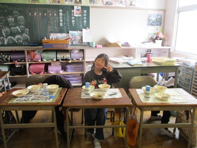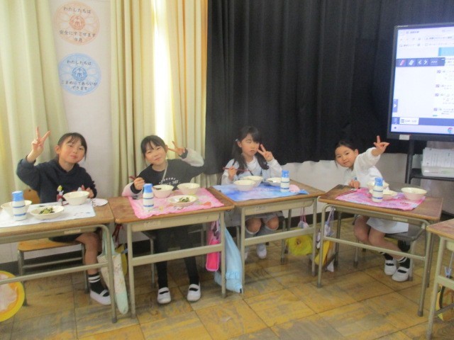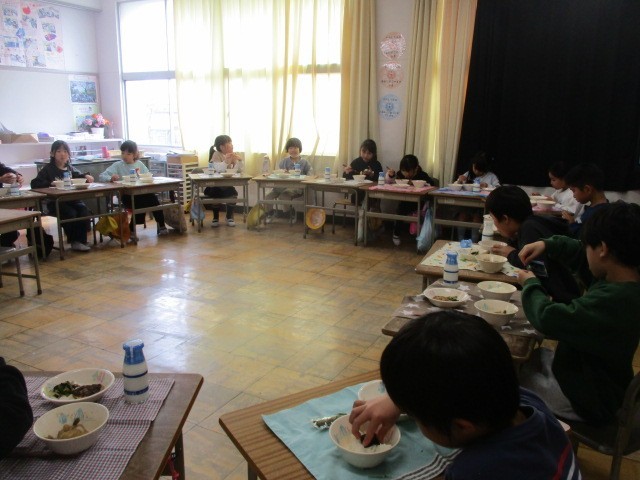 今日は今年度最後の給食でしたので、大きな円になって顔を見ながら食べました。