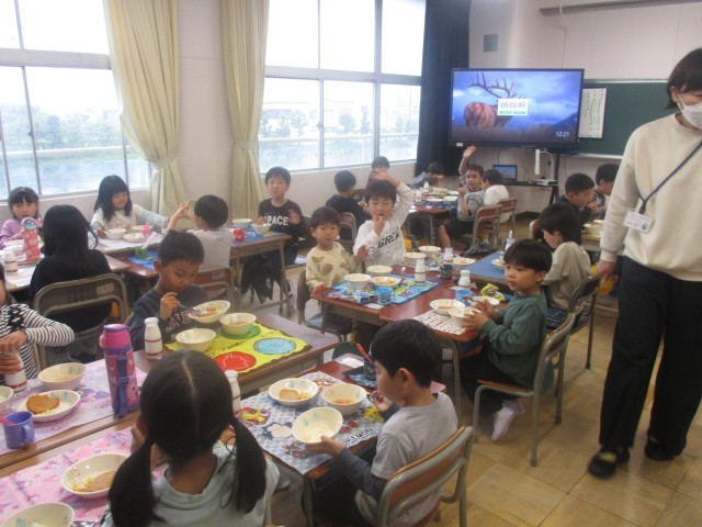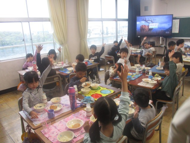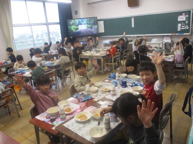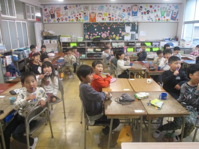 今日から給食が始まりました。3時間目から給食オリエンテーションを行い、順番を学びました。初めての当番、初めての歯磨きをクラスみんなで楽しく行いました。