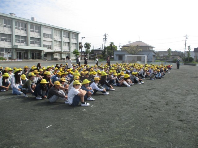 熊本地震から10年が経った今日、避難訓練をしました。教室で避難の仕方を確認した後、シェイクアウト、運動場への避難をしました。静かに、落ち着いて避難することができました。
