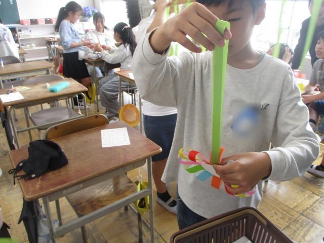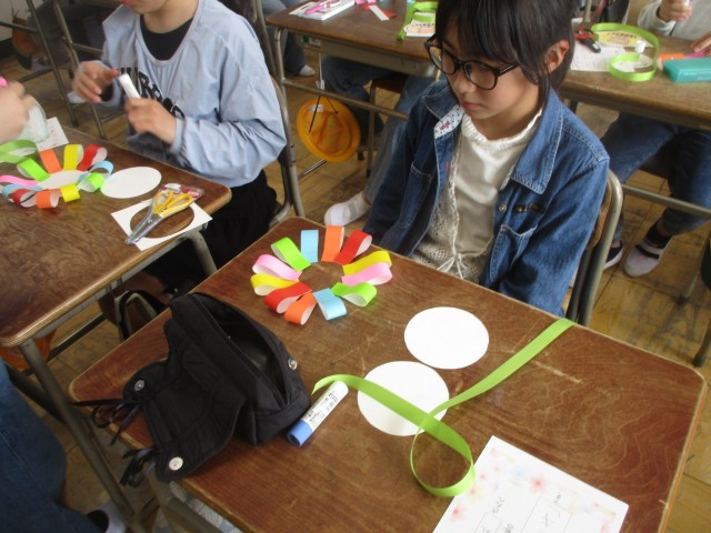 1年生を迎える会に向けて、1年生に贈るメダルを作りました。丁寧に色をぬったり、のりで折り紙をはりつけたりして、メダルを作り上げることができました!