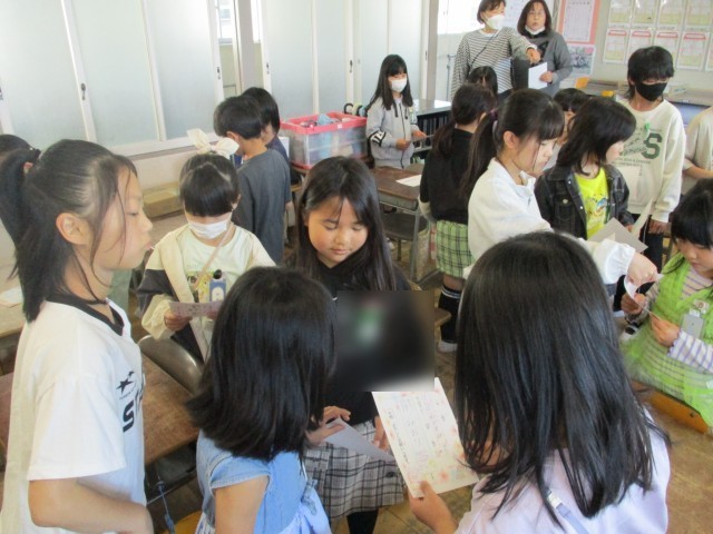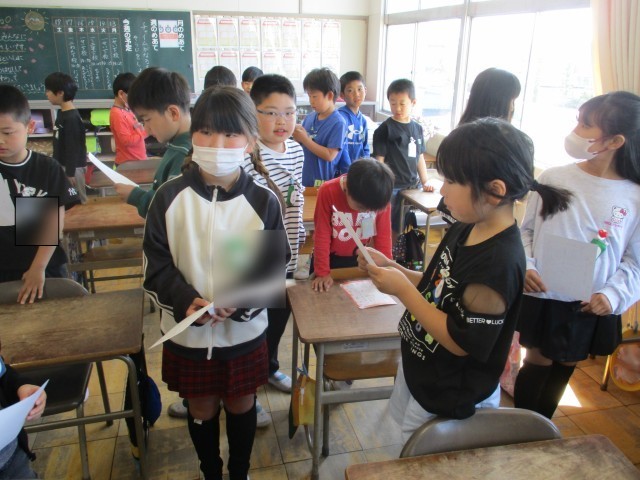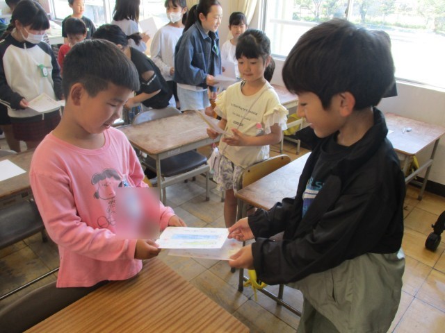 4年生と2年生の「ペア顔合わせ」を行いました。自己紹介をしながら名刺を交換し、少しずつ緊張もほぐれた様子。このペアで年間を通して様々な活動に取り組みます。異学年交流の中で、思いやりの心を育んでほしいと願っています。