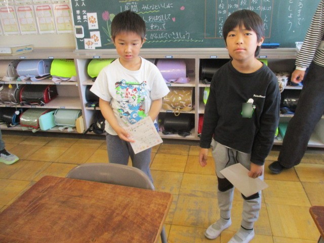 今朝はペア学年の4年生と初めて顔を合わせて、名刺交換をしました。