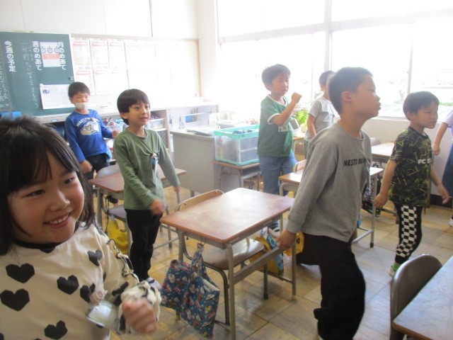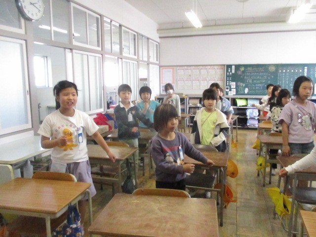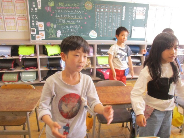 5時間目に英語の授業がありました。昨年と同じルビー先生に、自己紹介の仕方や色、アルファベットなどを学びました。笑顔で楽しく取り組んでいました。