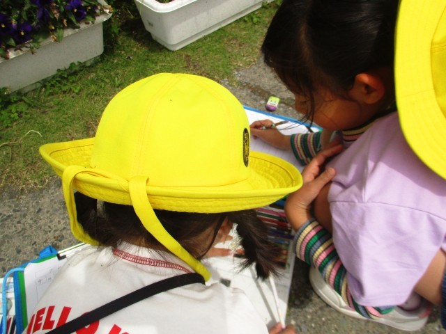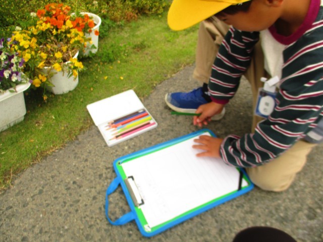 生活の春見つけの授業では、校庭の春を探して記録しました。ハルジオンやたんぽぽ、ダンゴムシなどをスケッチしました。