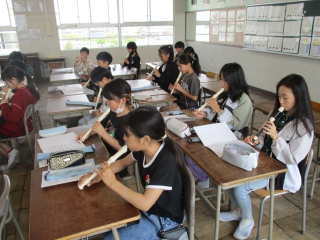 音楽の授業では歌唱とリコーダーに取り組みました。「ありがとうの花」の歌唱では、音楽室が優しい空気に包まれるような、とても綺麗な歌声が響き渡りました。