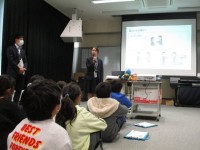 直方体の辺と辺との関係について調べました。この辺とこの辺は垂直?平行? みんなで確認した後、eライブラリを使って復習もできました。