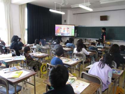 5年生にとって昨年度とは違う英語の学習が始まりました。動画を見ながら歌を歌ったり、発音練習をしりしました。これからの学習も楽しみです。