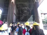 最初の見学地の法隆寺に到着しました。ガイドさんの説明を聞きながら、世界最古の木造...