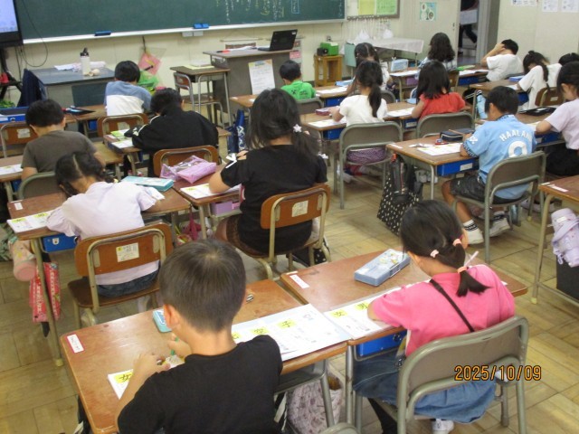 10/9 漢字の勉強頑張っています!(1年生)