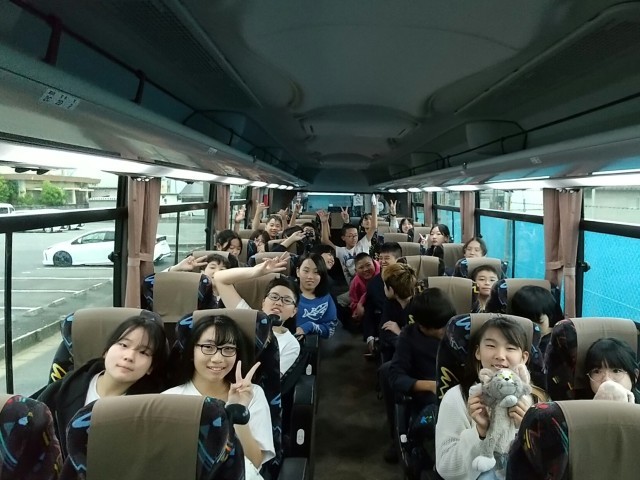 出発式を終え、バスは奈良に向けて出発しました。和気あいあい、楽しい2日間にしましょう。保護者の皆様、お見送りありがとうございました。