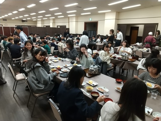 睡眠不足ぎみの子もいますが、みんな元気に朝食をいただいています。