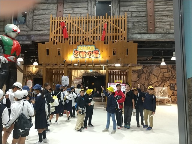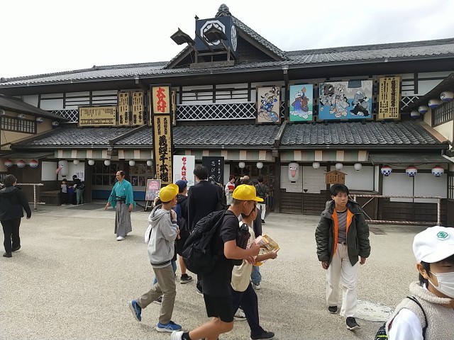 東映太秦映画村では、立体迷路などのアトラクションを楽しんだり、お土産を買ったりして過しました。