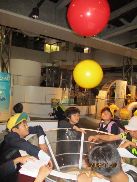 午前中は、理工館・生命館をまわり、グループで楽しく見学したり体験したりしました。