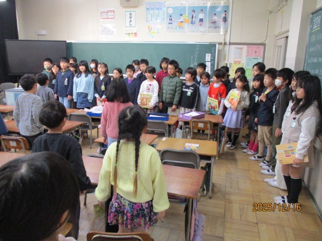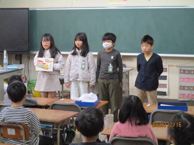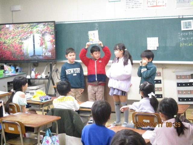 3年生の子どもたちが、1年生におすすめの本を紹介しました。