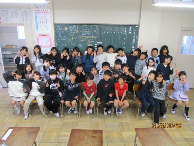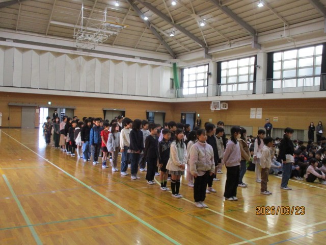 今日は、修了式でした。代表の子が、校長先生から修了証を受け取り、みんなでそろって礼をしました。校長先生から、3年生のよいところは「挨拶が素晴らしいところです。」と褒めてもらって、自分たちの学年のよさを、また一つ知ることができたと思います。元気で明るく、助け合えるみなさんは、4月から立派な4年生になれると思います。先生たちも、とても楽しかったです。一年間、ありがとうございました。健康や安全に気をつけて、よい春休みを過ごしてくださいね。