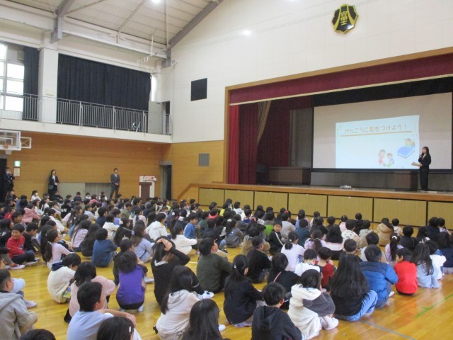 続いて、生徒指導のお話を聞きました。「は」「る」「や」「す」「み」の頭文字で、春休みに気を付けることを教えていただきました。