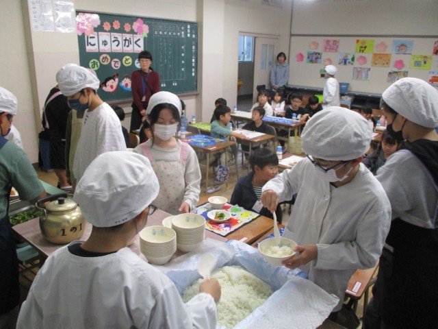 6年生のお兄さん、お姉さんが配膳をしてくれました。