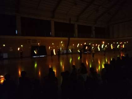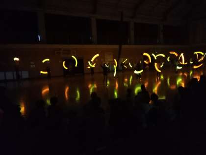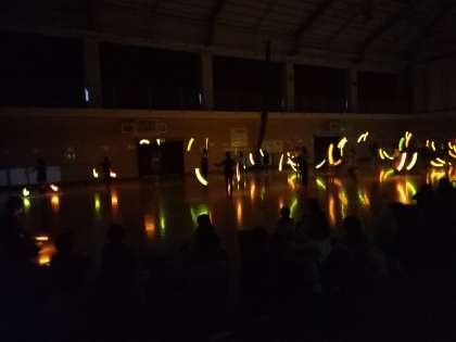 もうひとつのグループの舞です。まるで、ホタルが飛び交っているような幻想的な雰囲気が、体育館いっぱいに広がりました。