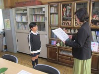 6年生の子どもたちが、1年生の話をよく聞いてあげながら、優しく掃除の仕方を教えています。