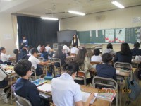 5年生の教室では、家庭科で玉結びの練習をしていました。