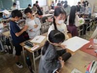 今週はどの学年も体力テストを行っています。5・6年生は種目も多く普段使っていない筋肉を使って種目に取り組んでいます。6年生はシャトルランの計測を行いました。3人一組で行いました。昨年の回数を超したいと意気込む児童も多く、どの児童も真剣に取り組みました。結果は、向上した児童が多く満足そうでした。