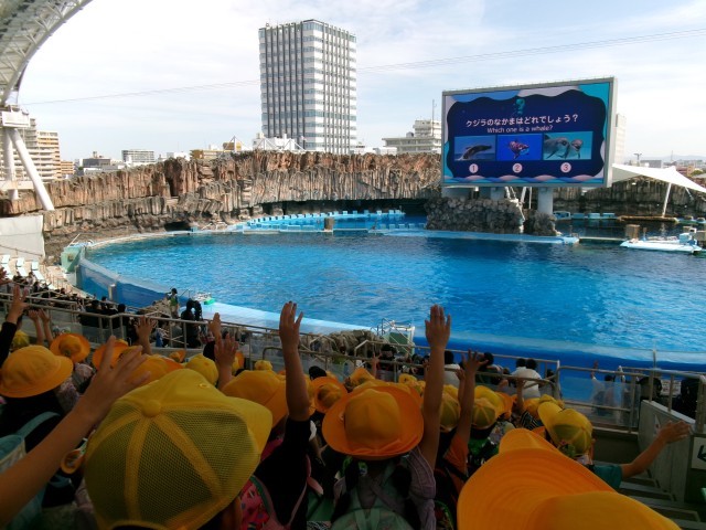 校外学習で、名古屋港水族館に行きました。バスに乗るときのマナーや水族館での過ごし方、生き物の様子などを楽しく学習することができました。