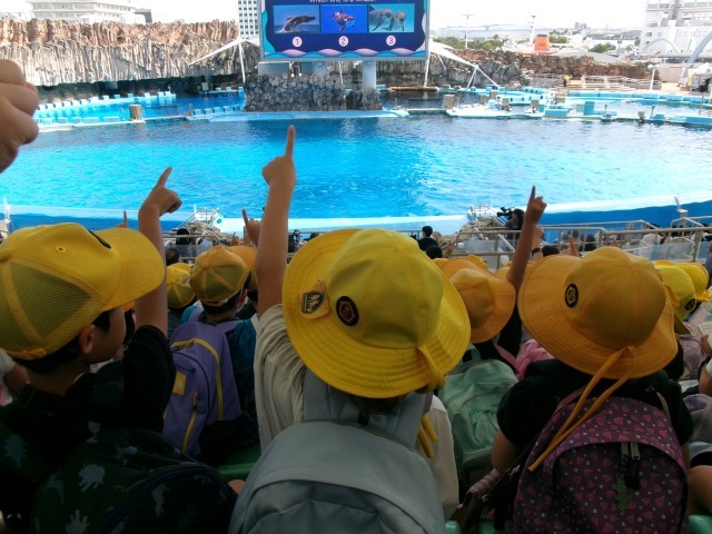 校外学習で、名古屋港水族館へ行きました。学年みんなで迫力のあるイルカショーを見たり、初めてグループでの見学をしたりしました。グループで仲良く見学をする姿が見られました。