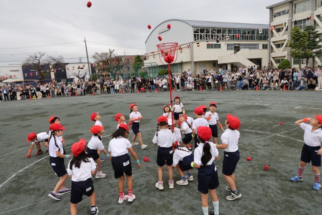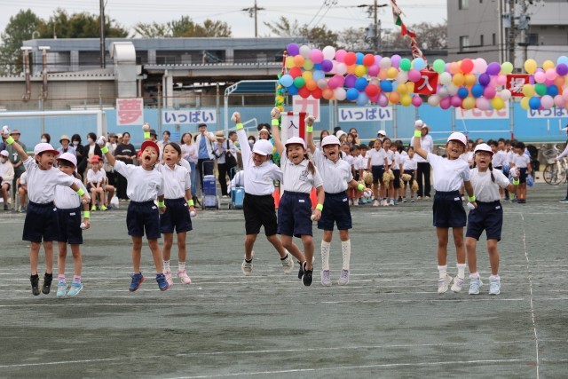 1年生にとって初めての運動会。これまで一生懸命練習に取り組んできました。合言葉は「メリハリ」。「気を付け」はピシッと!玉入れや徒競走は元気よく、思いっきり!!当日はこれらを意識して、素敵な姿をお家の方や地域の方に見せることができました。