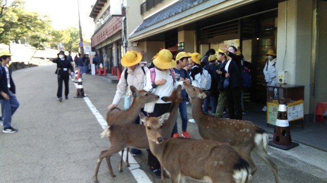 お昼ごはんの後は、鹿せんべいをあげたり、おみやげを買ったりしました。