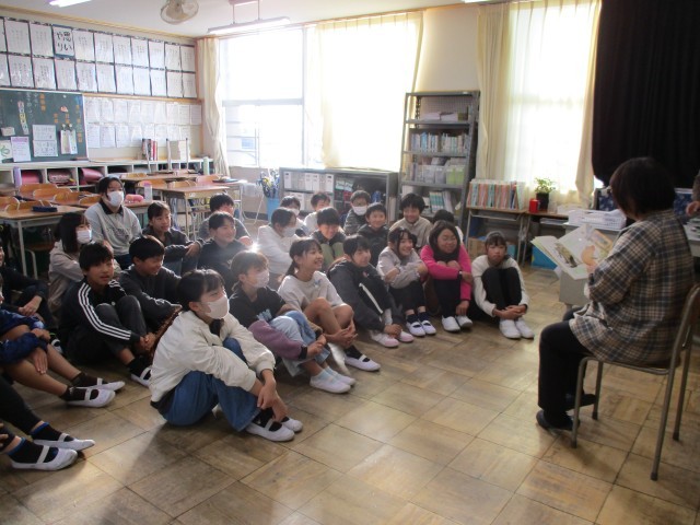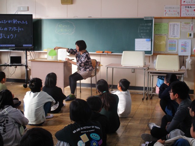 朝の時間に、読み聞かせがありました。「あのね」さんによる読み聞かせでした。
