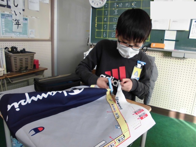 5年生は家庭科でエプロンを作っています。初めて使うミシンやアイロンにドキドキ。絡まった糸をほどくのにイライラ。一枚のただの布がだんだんとエプロンになっていくのにワクワク。