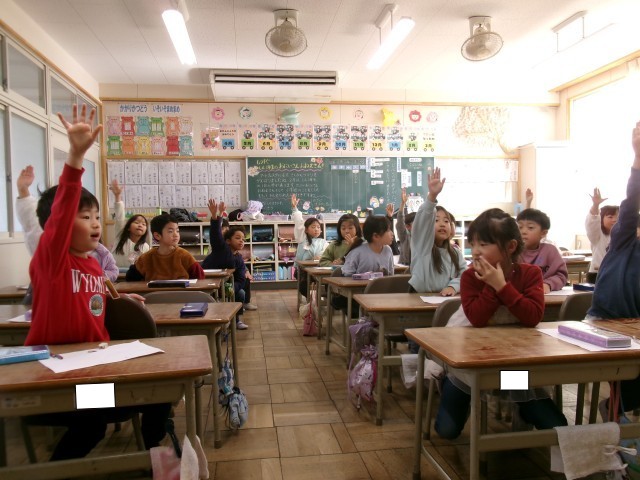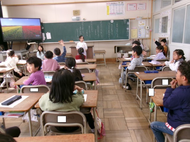 国語で「これは、なんでしょう」で、答えとヒントを考えました。今日は、一人ずつヒントを出して、みんなで答えを考えました。はじめは、2つだけヒントを言い、答えが分からないとき、ヒントを追加して出しました。4つ目のヒントで、みんな答えることができました。ヒントを聞いて、「わかった。」「なるほど。」と、いう声が聴かれ、問題を出す子も答える子も、楽しんで取り組むことができました。