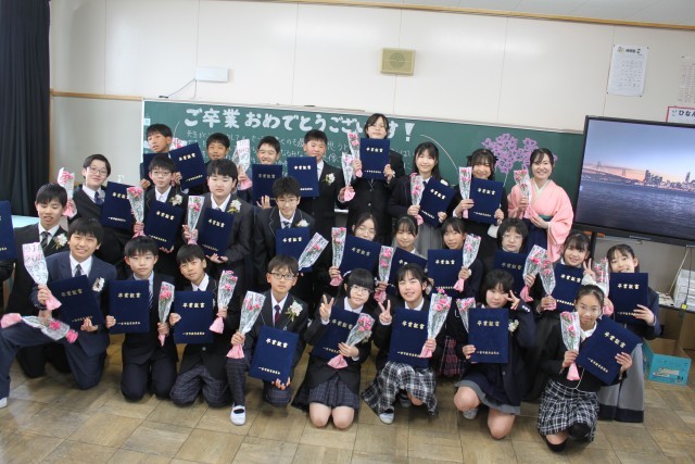 6年生106人が末広小学校を卒業しました。ご卒業おめでとうございます。これまでたくさんの方に関わっていただき、立派に成長した姿を見せてくれました。保護者の皆様、地域の方々、本当にありがとうございました。次は中学生として、さらなる成長を願っています。