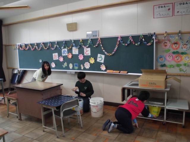 今日は昨年度の5-1、5-2の人が登校し、明日の入学式に向けて準備を行いました。新1年生のためにてきぱきと行動していて、最高学年として、とても頼もしい姿を見せてくれました。新1年生のみなさんが明日元気に登校してくれることを、みんな楽しみにしています。