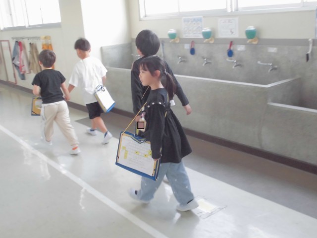 4/20(月)に2年生と学校探検に行きました。2年生はお兄さん、お姉さんとして1年生に学校を案内することができました。また、1年生はお兄さん、お姉さんの話を聞いて、学校内のいろいろな場所を知ることができました。