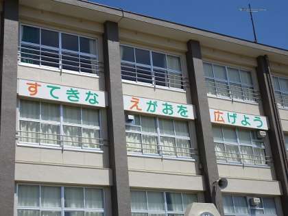 校舎やプールフェンスなどに、パネルで掲示されています。