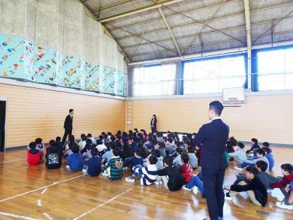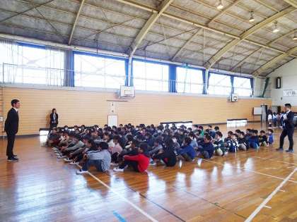 始業式のあと、屋内運動場で学年集会を行っていました。