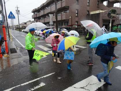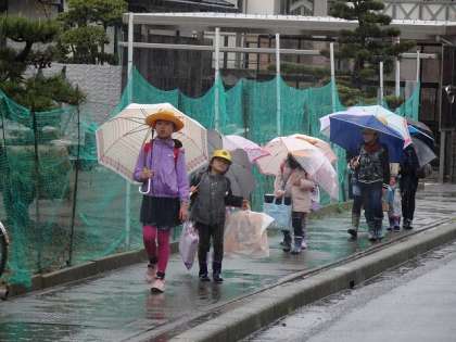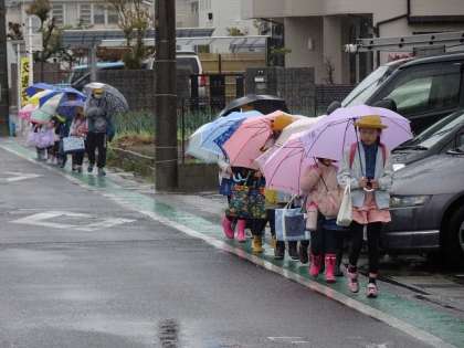 初めての雨の日の登校になりました。