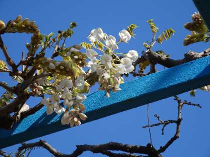 よく見ると、藤の花が咲き始めていました!葉も出てきていました。